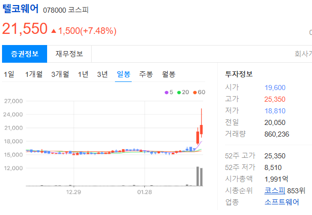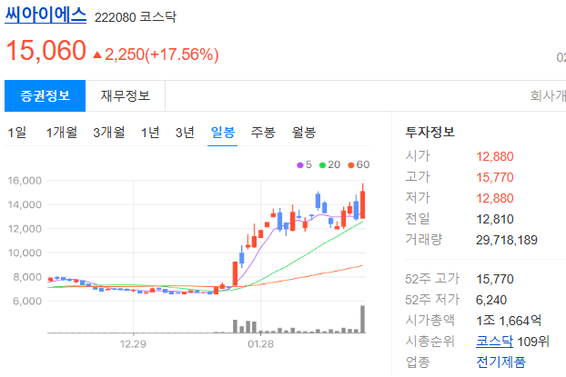 상장일에는 빛을 못 봤지만 (종가 18120원) 연말이 근접할 수록 무섭게 올라 한 때 12만원까지 갔다가 내려왔다.